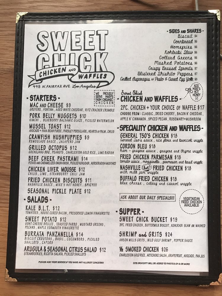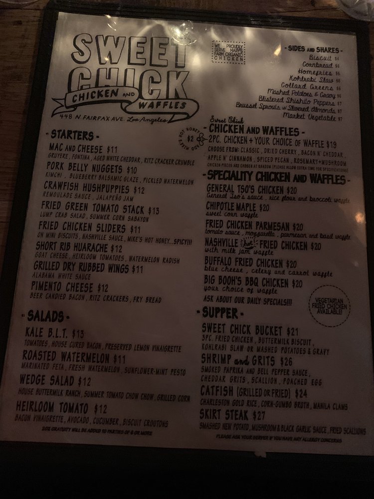 Sweet Chick, located in Los Angeles, offers a trendy and casual dining experience with a focus on New American, Southern, and Breakfast/Brunch cuisine. The restaurant provides a variety of options including vegan and vegetarian choices. Customers rave about the crispy chicken sandwiches, flavorful chicken and waffles, and delicious sides like mac & cheese and crinkle cut fries. The atmosphere is lively, with friendly and attentive service. While some reviewers mention higher prices and longer wait times, the overall consensus is positive, with many highlighting the unique menu options and house-made sauces. The restaurant also offers outdoor seating, full bar service, and a selection of handcrafted cocktails. Whether you're a meat lover or vegetarian, Sweet Chick is a must-visit spot for comfort food with a modern twist.