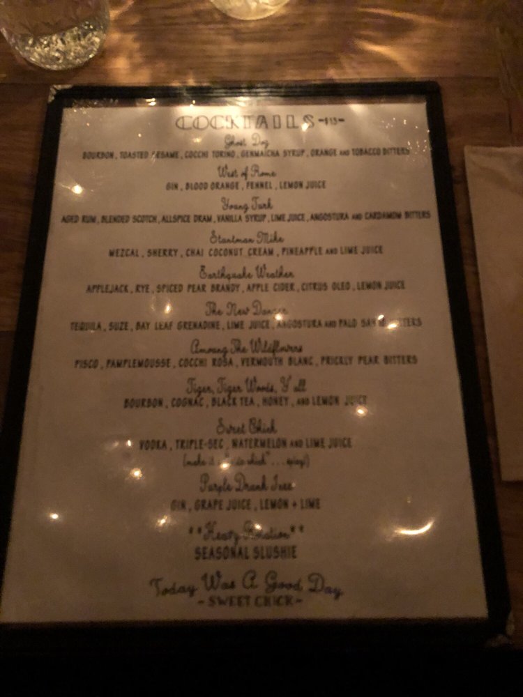 Fried chicken, pommes aligot, chorizo'd bacon, poblano, and beans.